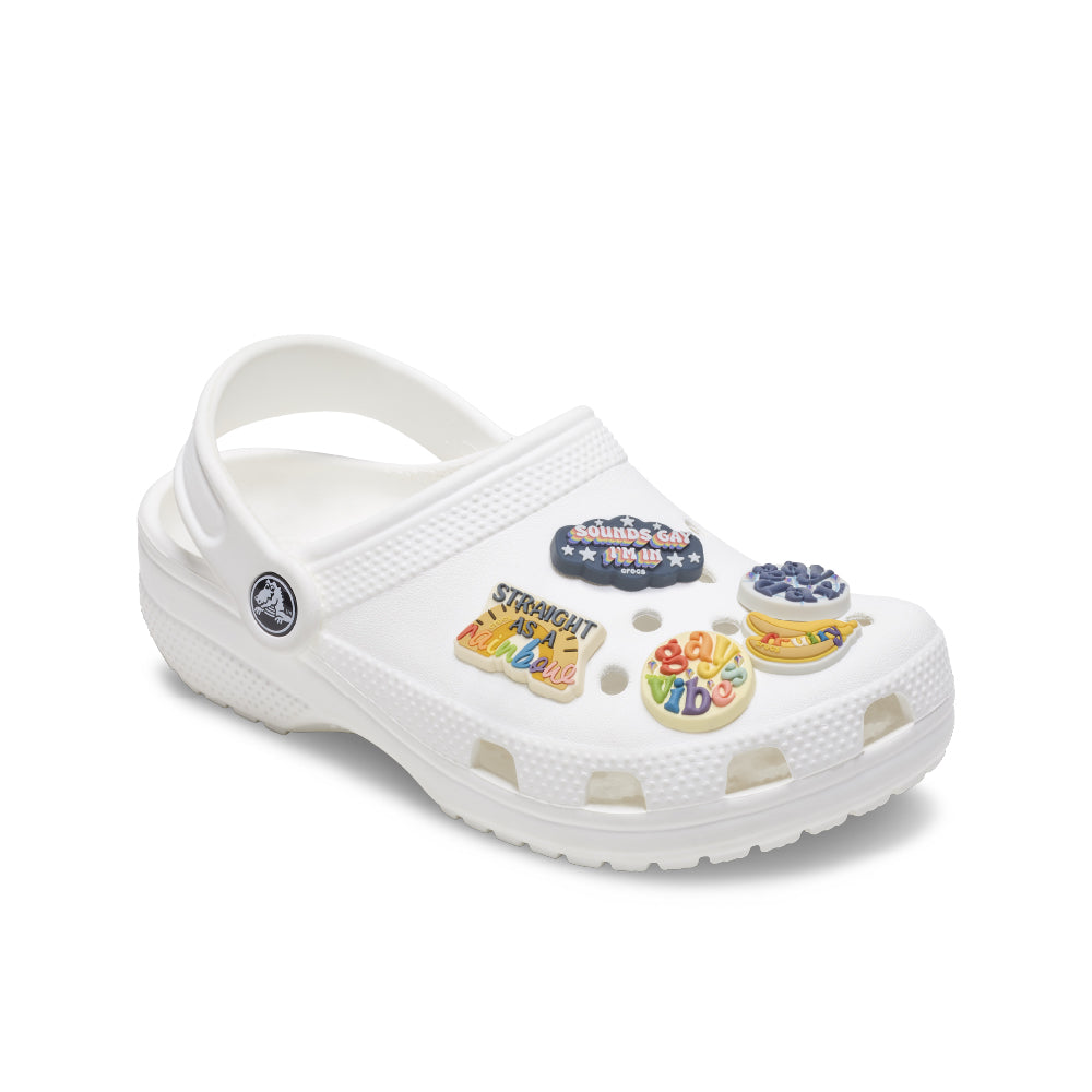 เพิ่มสไตล์ให้รองเท้าและไอเท็มของคุณด้วย Irreverent Pride 5 Pack Jibbitz™ เหมาะสำหรับการตกแต่งรองเท้า กระเป๋า และไอเท็มอื่นๆ อีกมากมาย