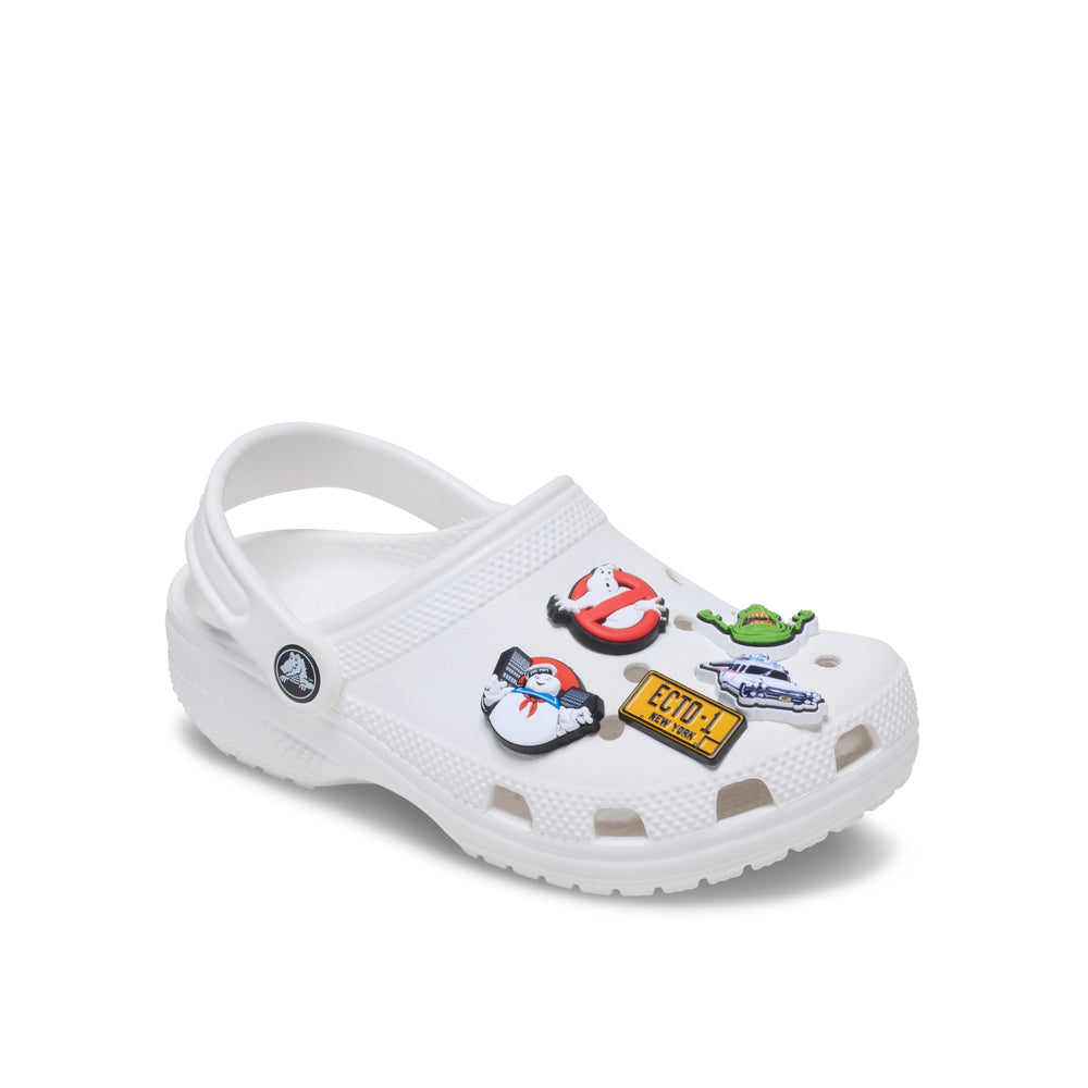 The P.K.E. meter is off the charts! Suit up and save your city from destruction in the Ghostbusters Classic Clog. Each pair is outfitted like the iconic flight suit and equipped with tools to take on the paranormal. A Ghost Trap Jibbitz™ charm and Proton Pack with touch-activated power-up sound are included on the right shoe, and Slimer sits on the left, waiting to be captured. Glow in the dark ectoplasm oozes over the toes and interchangeable name tags come with each pair so you can choose which Ghostbuster you want to be that day.