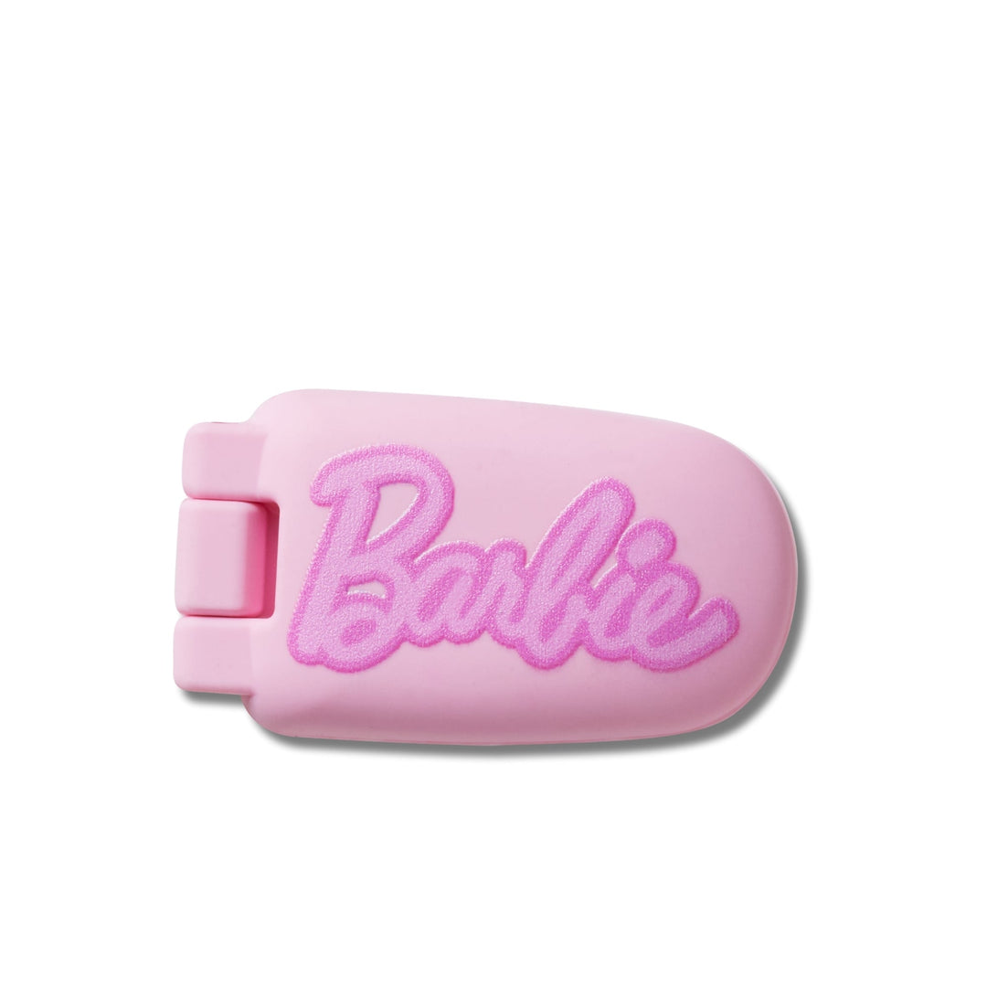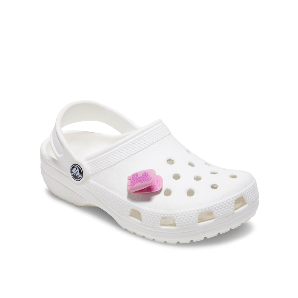 The new Barbie™ Classic Clog is the perfect statement shoe for fashion icons everywhere. This comfortably chic style comes in a pink hue with a stylish all-over monogram print. Make your look shine with elevated enamel Jibbitz™ charms featuring a Dreamhouse™, roller skate, palm tree, heart sunglasses, and Barbie™ logo.