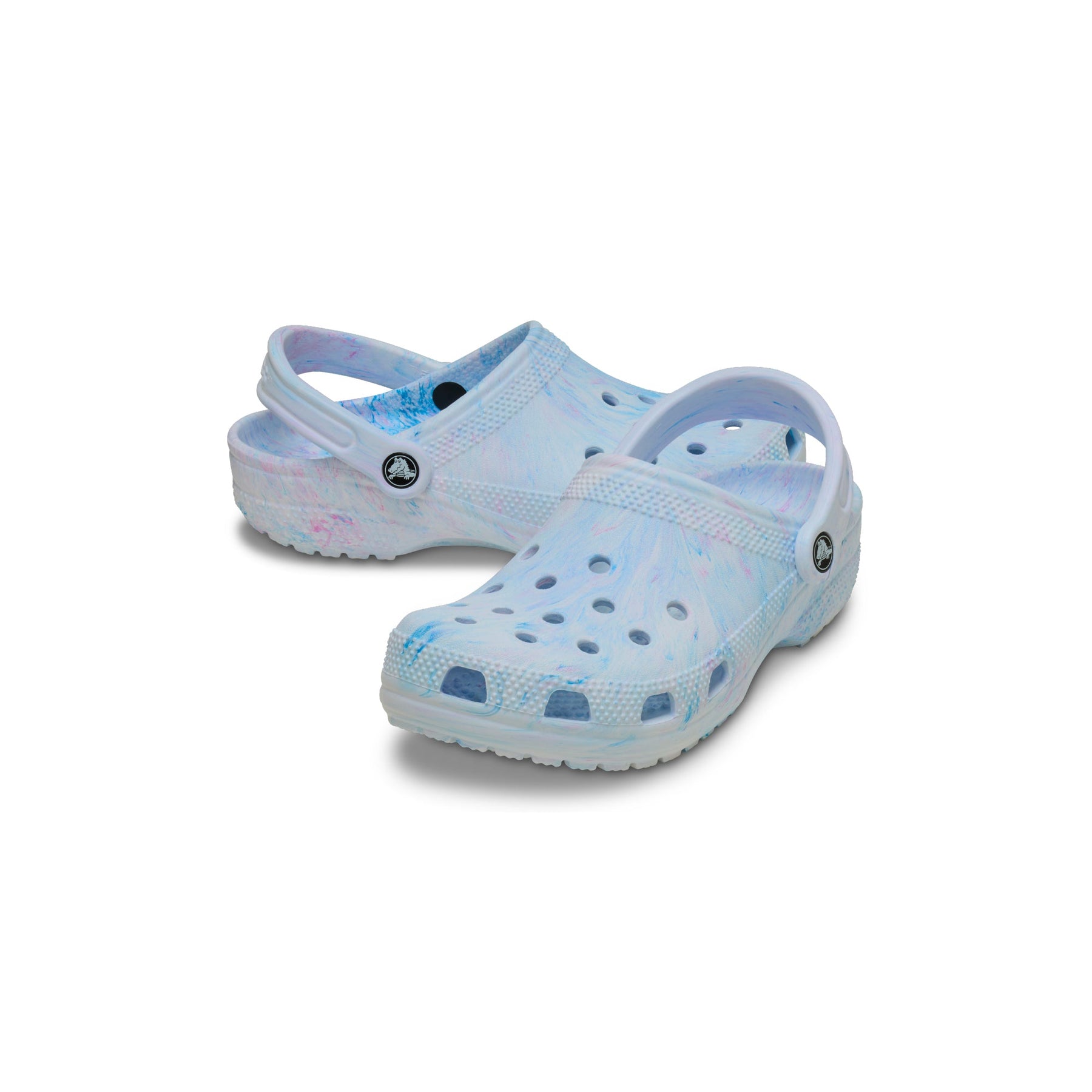 Enjoy an inspiring new version of our marbled treatment with this version of our iconic clog. Our new watercolor marbled Croslite material creates a soft, artistic marbled effect that organically flows with the shape of the shoe. Similar to mixing paints, each mixture is unique and gives each shoe its own colorful story. Croslite foam construction will keep you comfortably supported while the watercolor marbled treatment gives a creative boost to your style.