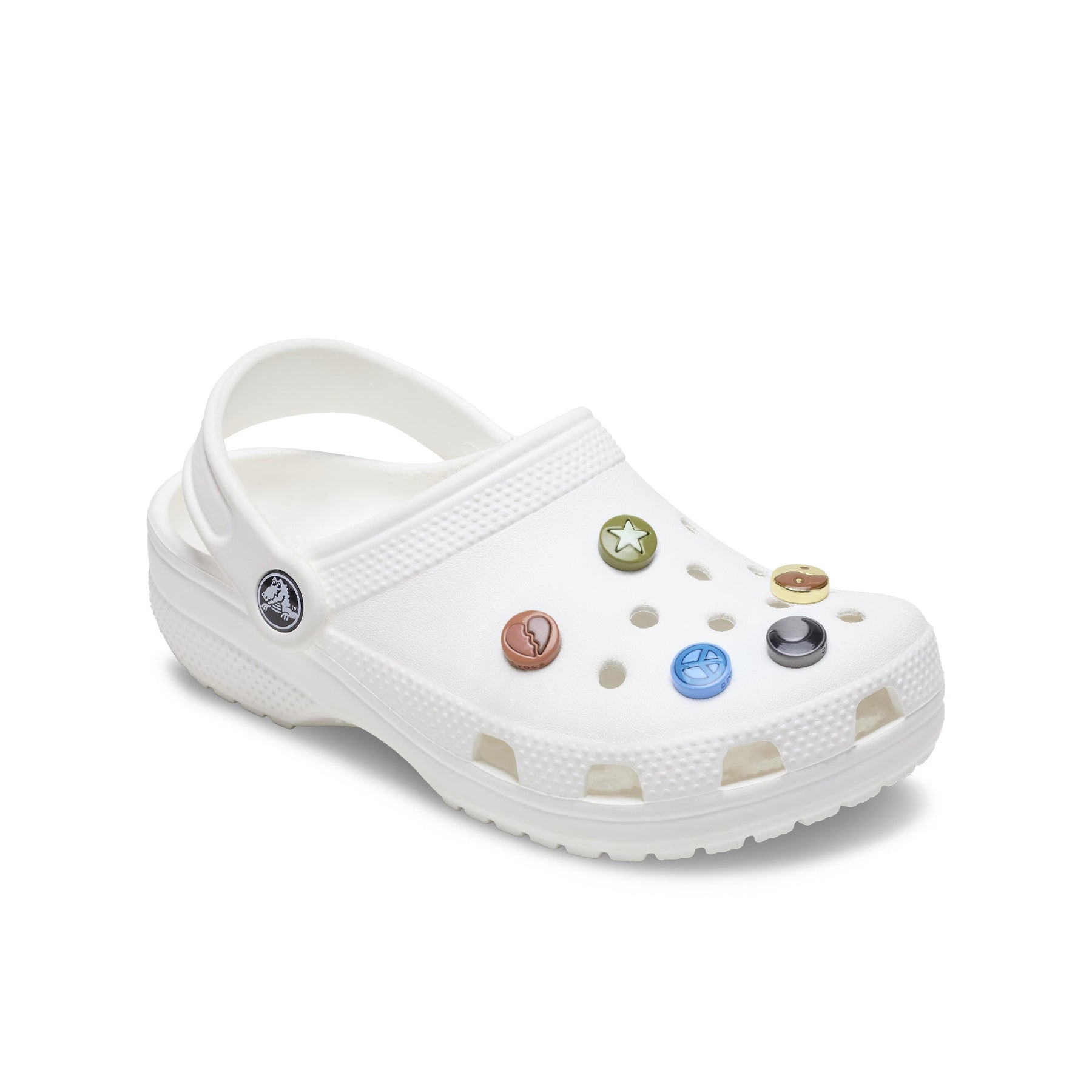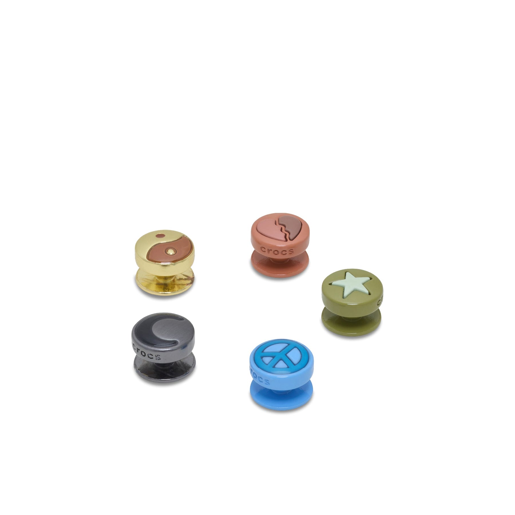 Pop some personality into your shoes with the Metallic Icons 5 Pack Jibbitz™ charm. It's the perfect addition to your favorite clogs, slides, sandals, bags, and more.
