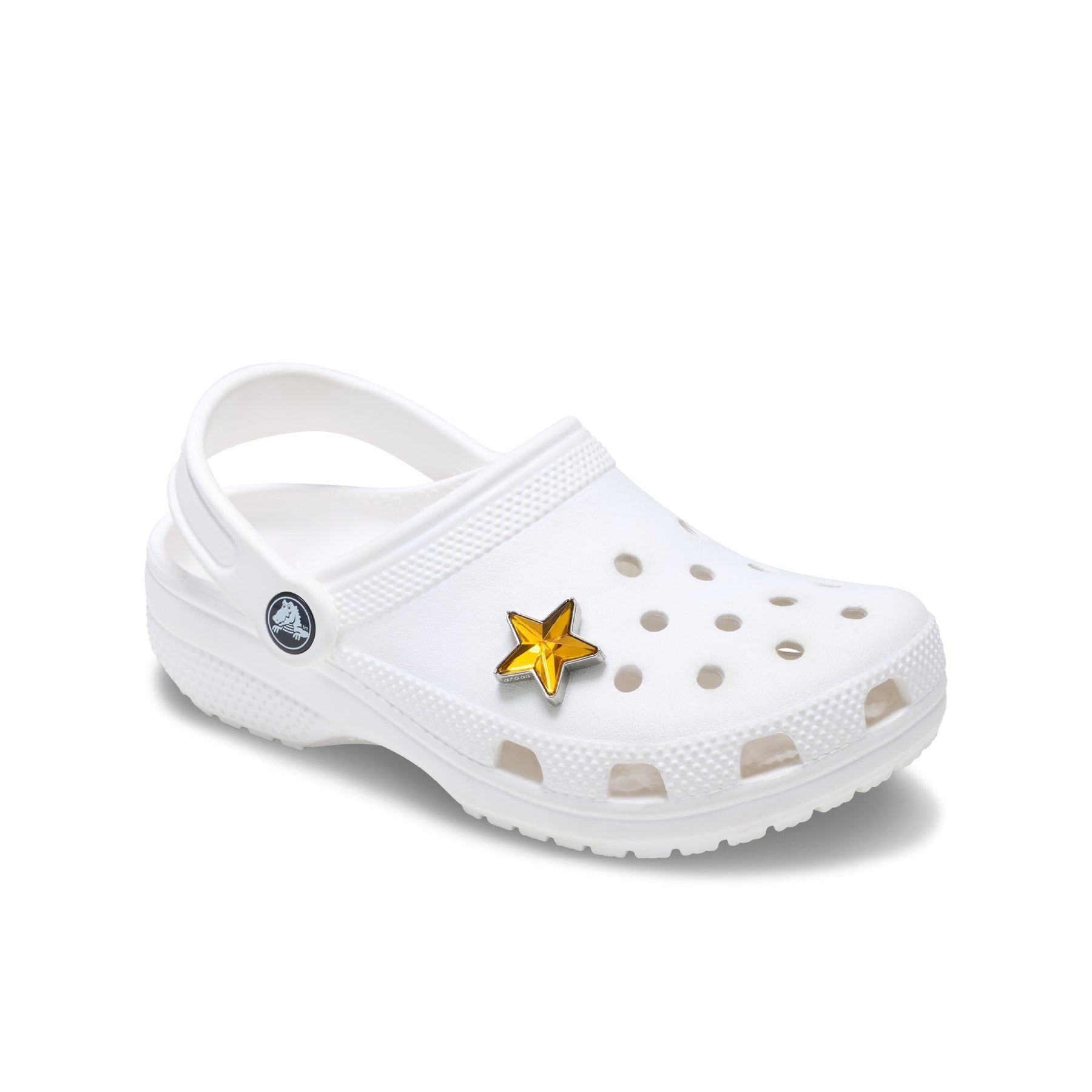 Pop some personality into your shoes with the Orange and Silver SMT Gem Star Jibbitz™ charm. It's the perfect addition to your favorite clogs, slides, sandals, bags, and more.