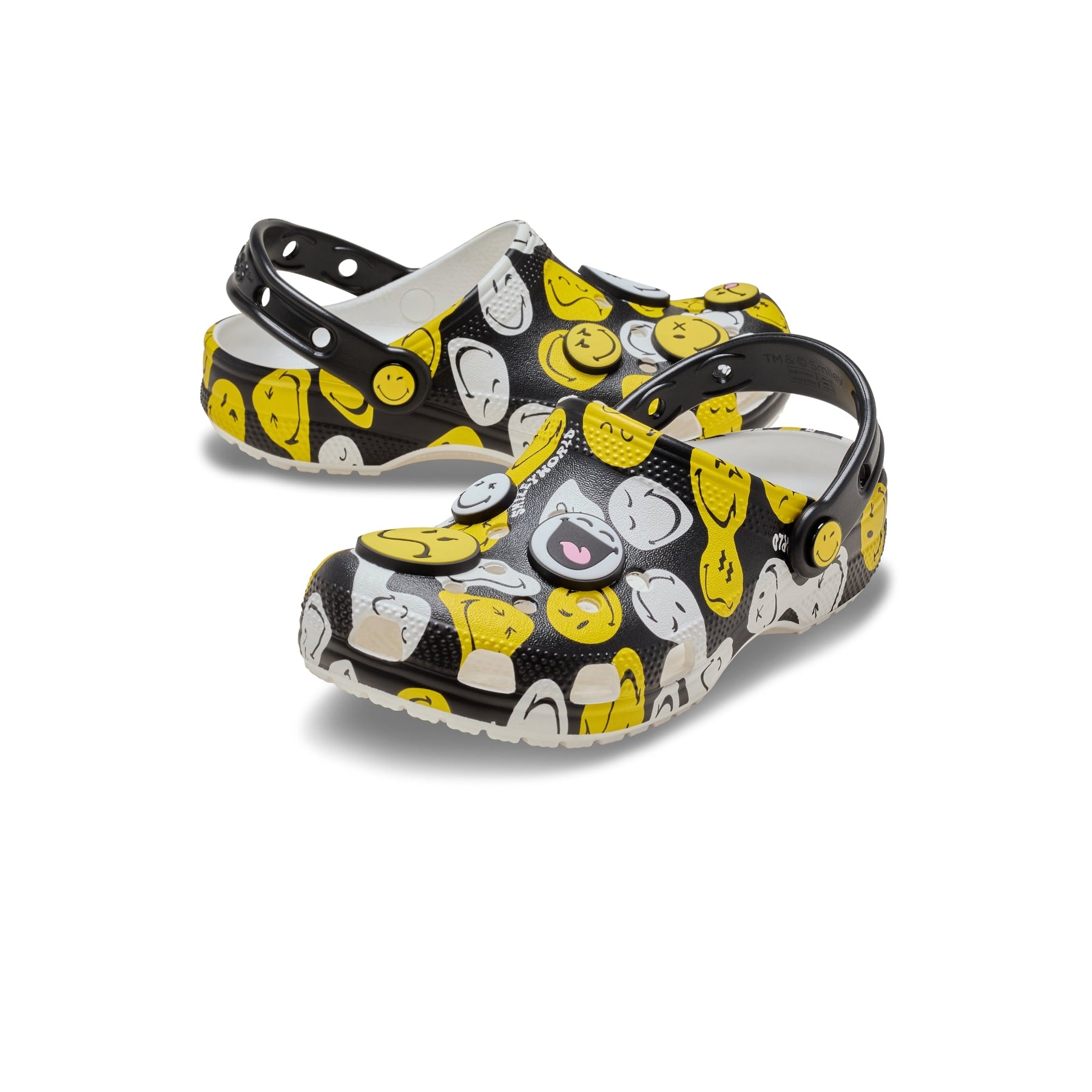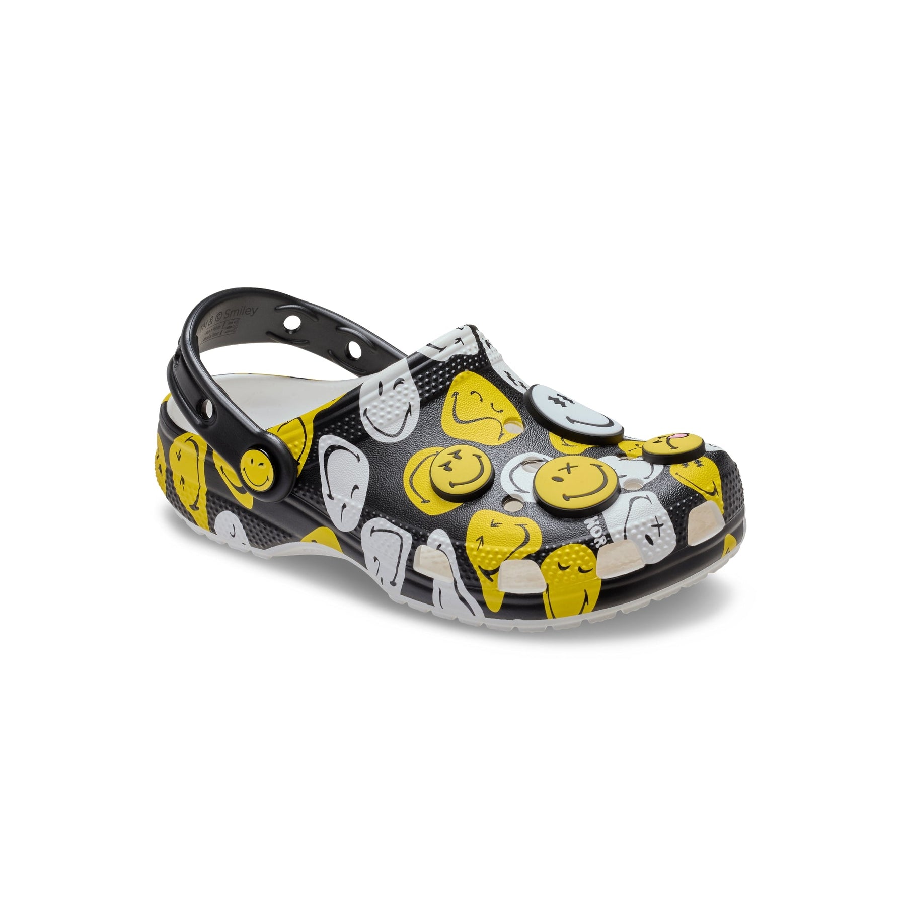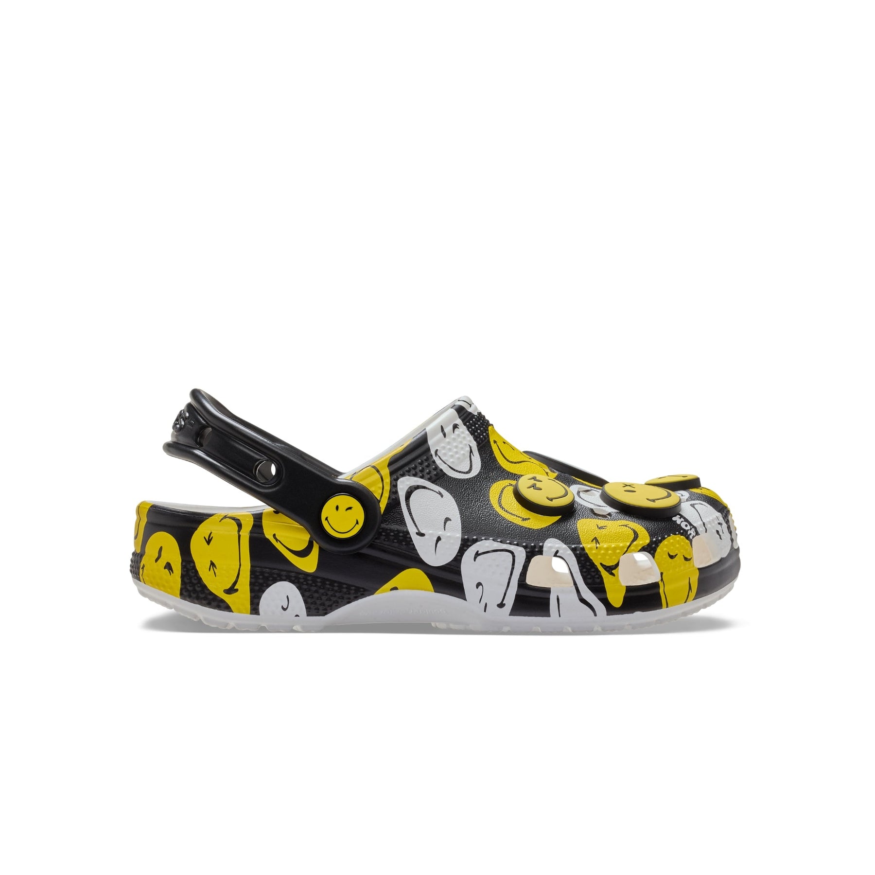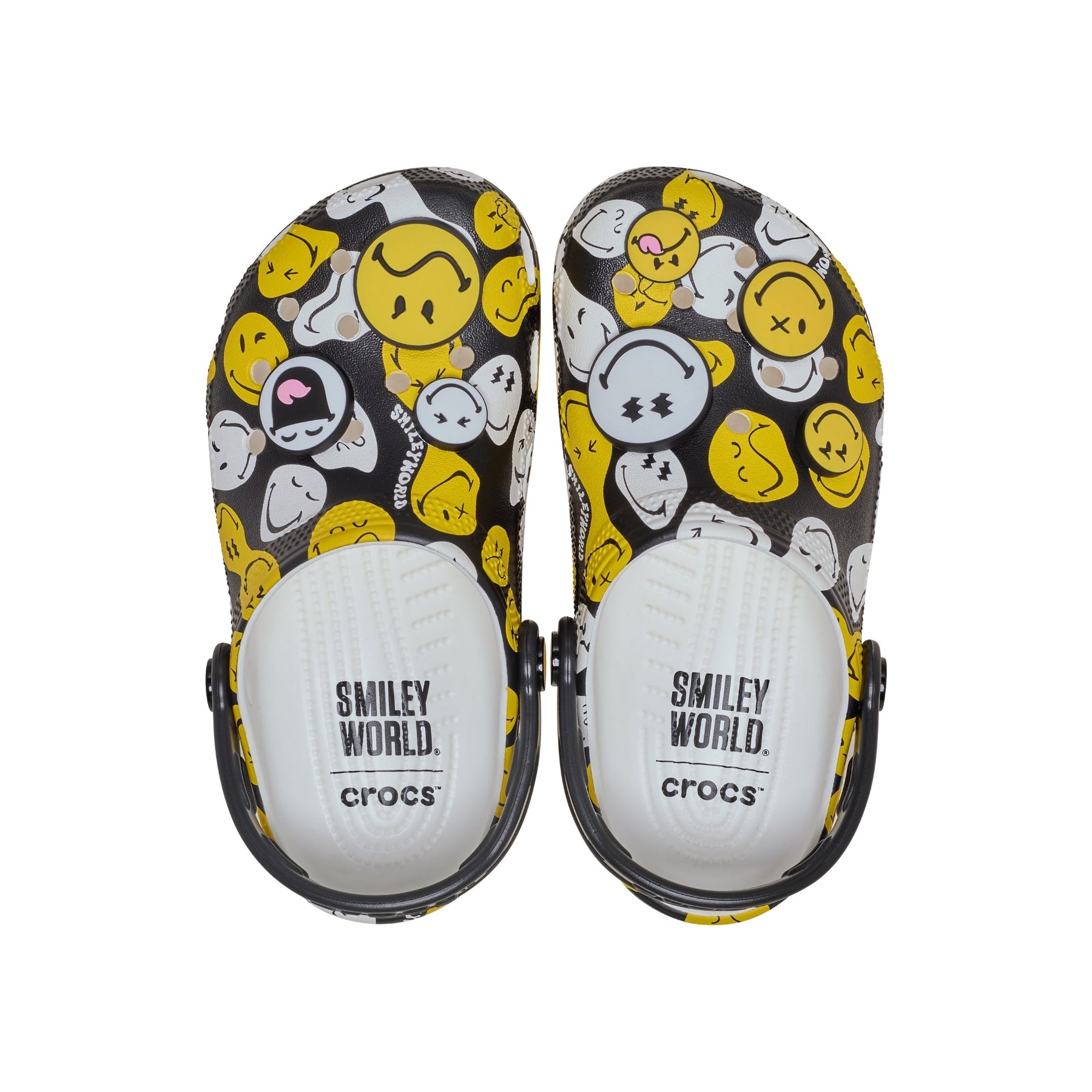 ให้เจ้าตัวเล็กใส่ความสุขติดตัวไปทุกที่กับ SmileyWorld® Classic Clog รุ่นสำหรับเด็ก รองเท้าสุดขี้เล่นที่มาพร้อมรอยยิ้มและความสนุกในทุกก้าว ส่วนด้านบนรองเท้าโดดเด่นด้วยลายพิมพ์ SmileyWorld รอบคู่
